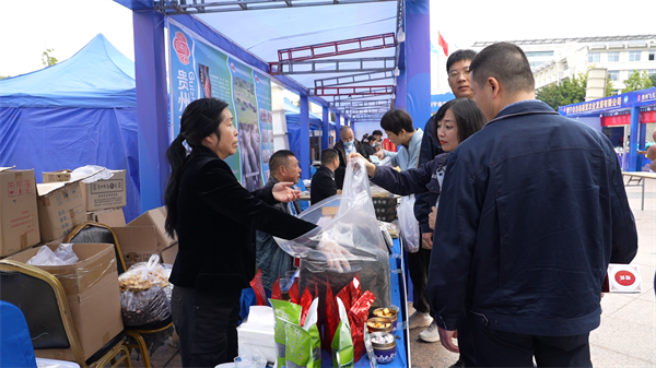 同样人气爆棚的还有贵州众帮顺农业开发有限公司的展位,其生产的腊肉凭借传统工艺制作出紧实肉质、咸香适中的独特风味,赢得了当地群众的青睐,仅活动第一天销售额就突破7万元,成绩十分亮眼。而贵州金瀑生态黑茶有限公司的展位前也捷报频传,公司负责人表示:“刚有两位客人直接订购了50多块黑茶砖,大家对我们的产品认可度很高,这次推介会效果远超预期。”贵州牛来香实业有限公司的展位上,两名工作人员一人忙着介绍产品渊源与特色,一人专注于打包发货,即便分工明确,仍难敌市民的采购热情,现场始终一片忙碌景象。