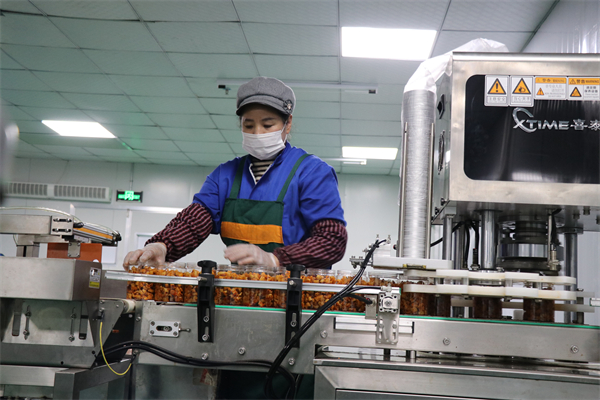 贵州卡妈农特产品开发集团有限公司生产车间的工人正在赶制订单。范俊岑 摄
