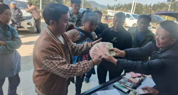 紫云自治县大营镇联八村村民分红现场。