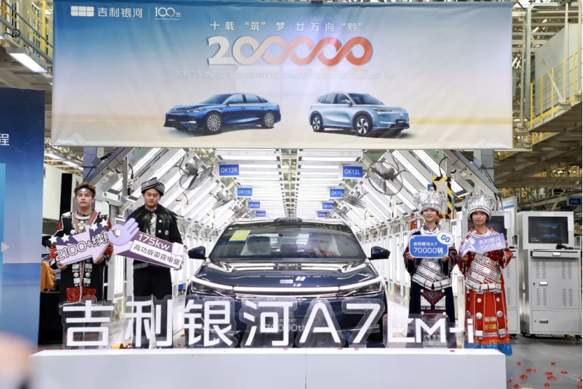 11月25日,在位于观山湖区的吉利汽车贵阳制造基地,一辆崭新的银河A7缓缓驶下OK线时,整个车间响起热烈的掌声——这是2025年吉利汽车贵阳制造基地下线的第20万辆吉利整车,也是银河A7达成第7万辆车下线的高光时刻。