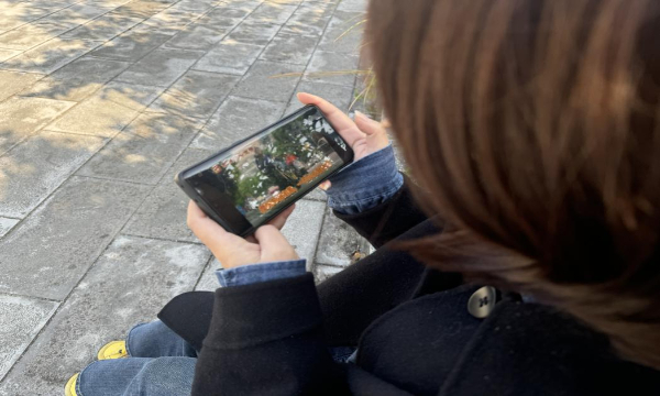 市民在观看紫云县公安局交警大队拍摄的方言宣传视频