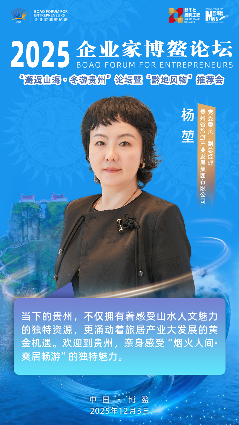 12月3日,由贵州省委宣传部指导,新华社品牌工作办公室、新华网、新华社贵州分社主办的2025企业家博鳌论坛之“邂逅山海·冬游贵州”论坛暨“黔地风物”推介会在海南博鳌举办。论坛现场,贵州省旅游产业发展集团有限公司党委委员、副总经理杨堃发表主题推介,以“烟火人间 爽居畅游”为核心,向全球嘉宾与企业家发出冬季贵州旅游邀约,并推出多款特色旅游产品,诚邀各界携手共拓旅居产业新机遇。