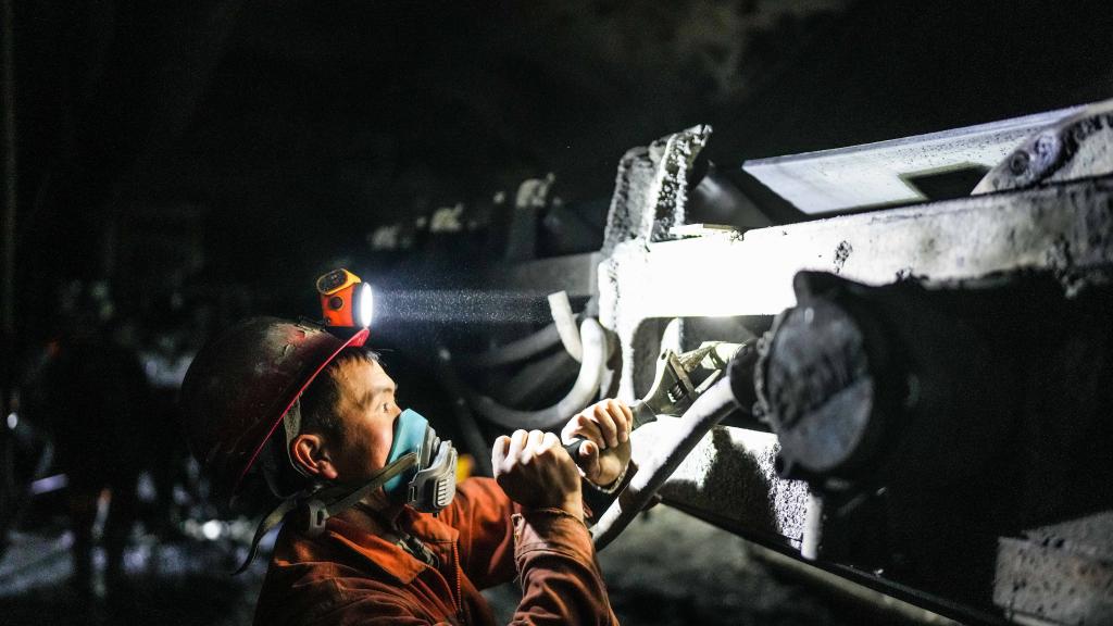 12月10日,工人在赫章县猪拱塘铅锌矿区井巷进行施工。