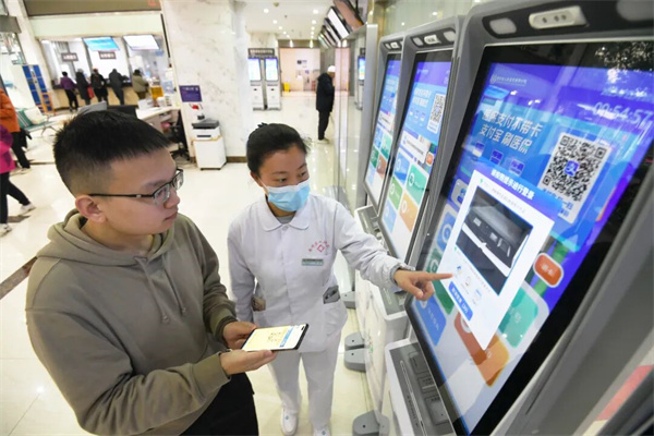12月10日,患者在南明区人民医院门诊大厅自助机上挂号就诊。