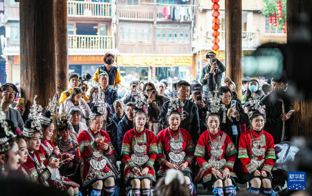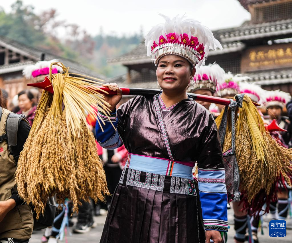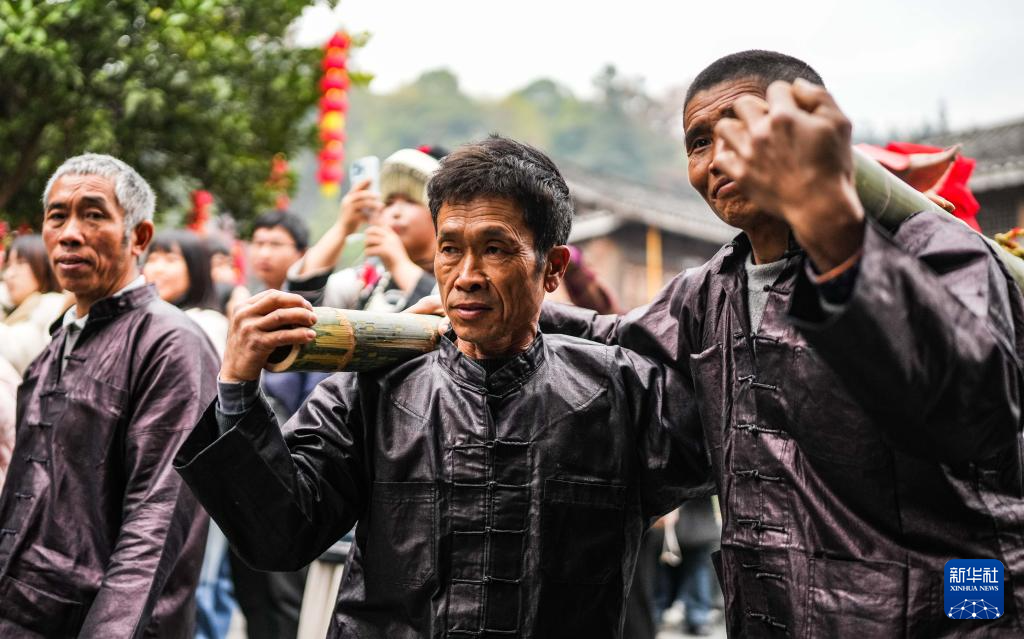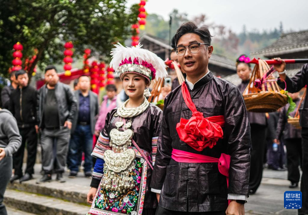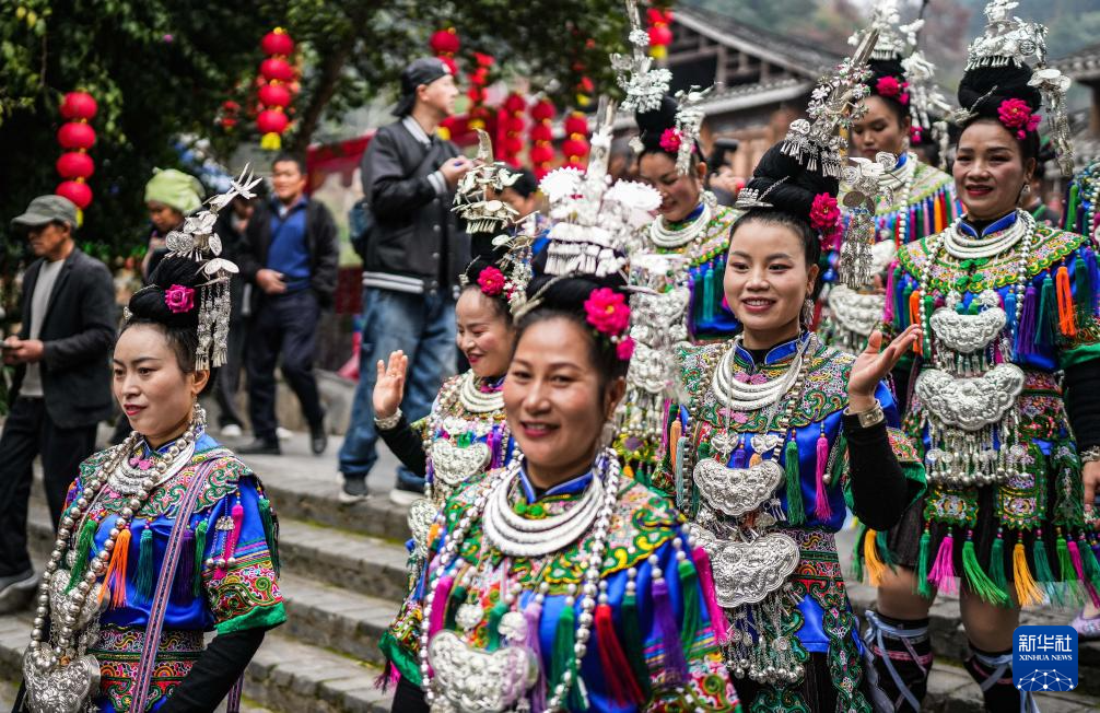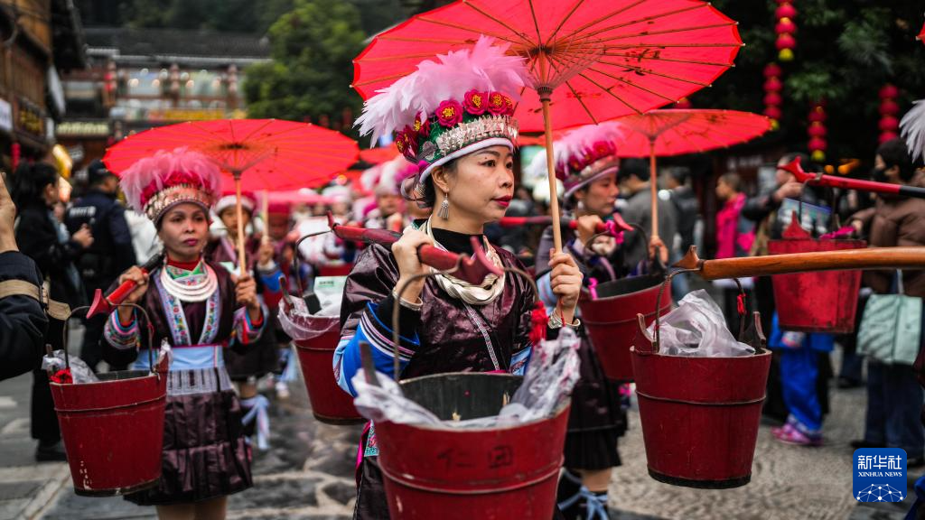12月20日,肇兴侗寨的展演队伍在行进中。新华社记者 陶亮 摄