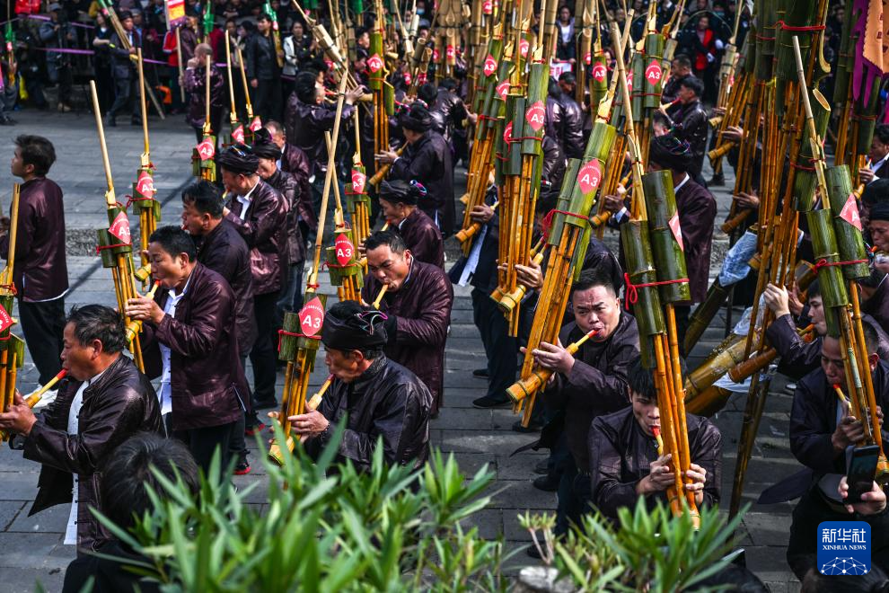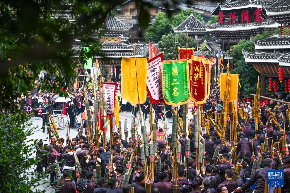 12月20日,在黎平县肇兴侗寨,侗族群众在赛芦笙。新华社记者 杨文斌 摄