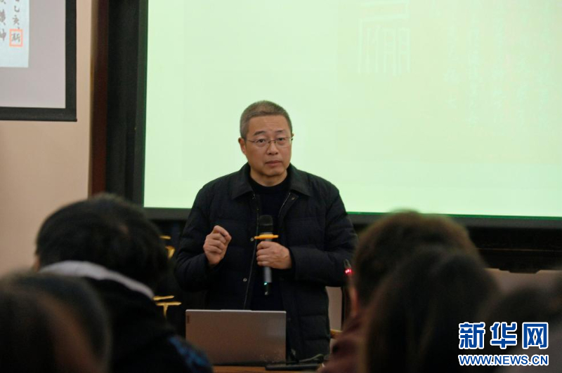 白彬教授现场讲解。新华网发(杨馨慧摄)
