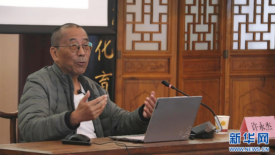 中山大学许永杰教授现场讲解何为中国史前考古学。新华网发(杨馨慧摄)