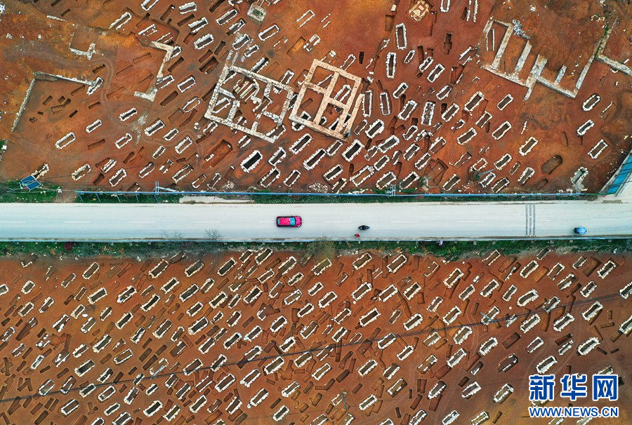 2023年3月30日拍摄的贵州贵安新区大松山墓群挖掘现场(无人机照片)。新华社记者 杨文斌 摄