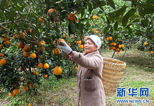 工人在果园采摘脐橙。新华网 刘昌馀 摄
