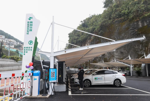 位于黔灵镇黔灵村的贵州杰筑新能源充电站。