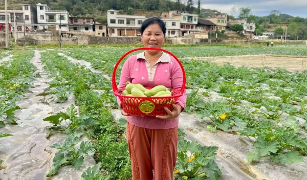 罗甸县边阳镇者任村农户采摘西葫芦。