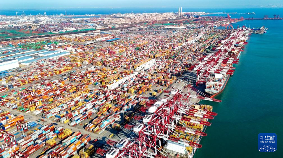 12月8日拍摄的山东港口青岛港(无人机照片)。新华社发(张进刚摄)