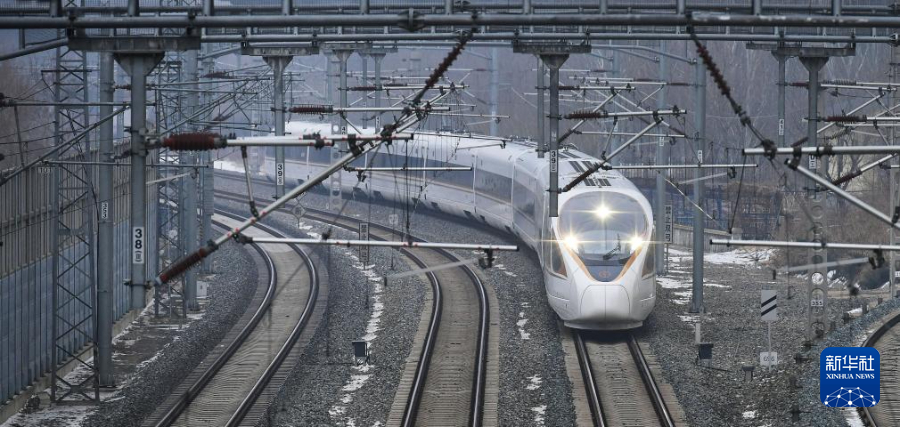 2021年1月22日,北京至哈尔滨高速铁路实现全线贯通。这是一列从沈阳北站开往北京朝阳站的复兴号列车行驶在京哈高铁线上。新华社记者 杨青 摄