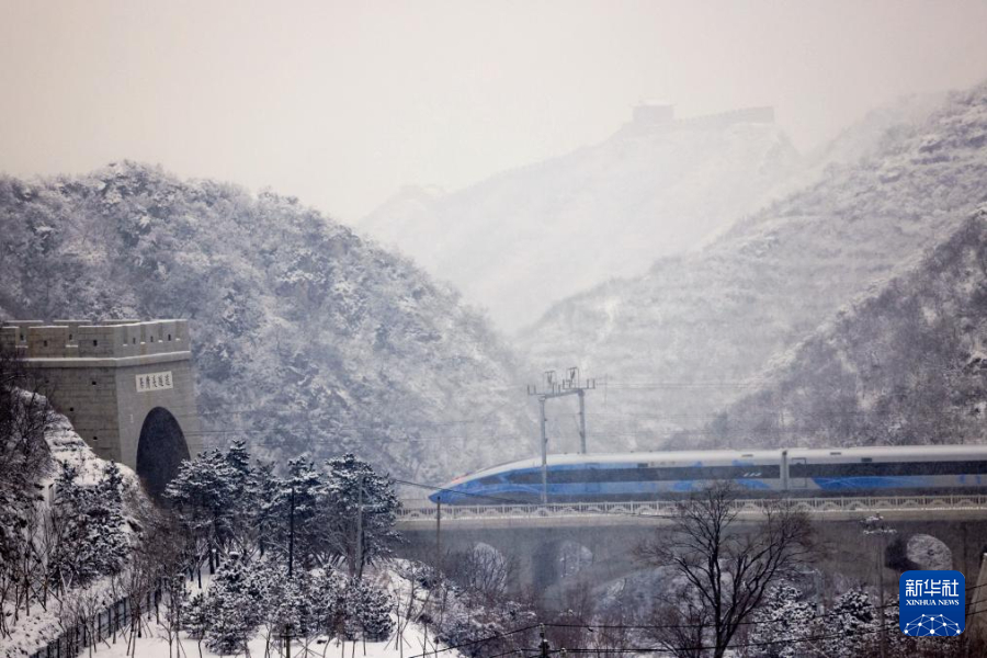2022年1月21日,京张高铁列车经过居庸关隧道,从北京驶向太子城。新华社记者 邢广利 摄