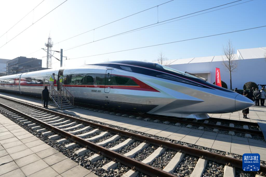 2024年12月29日,运营时速400公里的CR450动车组样车在北京发布。新华社记者 鞠焕宗 摄