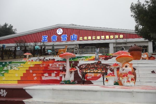 玉舍雪山滑雪场外的氛围布置。朱芸 摄