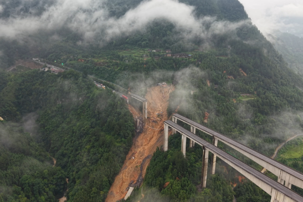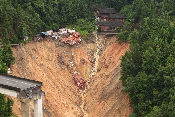 G76厦蓉高速猴子河特大桥引桥轰然垮塌。
