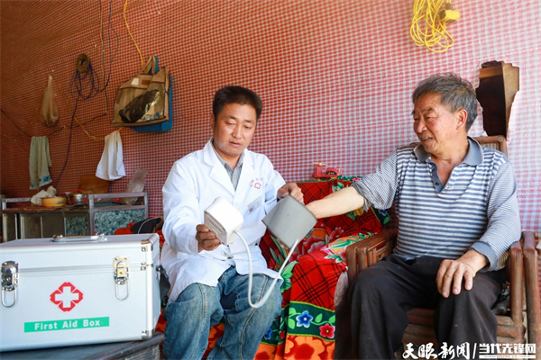 在威宁大街乡金星村群众家中,家庭签约医生为患者提供上门诊疗服务。(赵庆能 摄)
