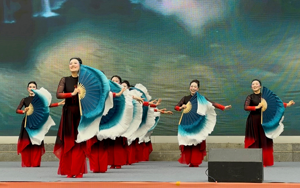 活动现场人头攒动、欢呼声此起彼伏,俨然一片欢乐的海洋。来自各乡镇(街道)的12支代表队与2支游客队伍,共14支力量同台竞技,身着特色服饰的队员们舞步铿锵、笑容明媚,每一个动作都充满活力,将现场气氛推向一个又一个高潮。