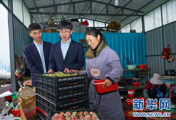 谢建芳向邮储安顺分行工作人员介绍草莓品种。新华网发