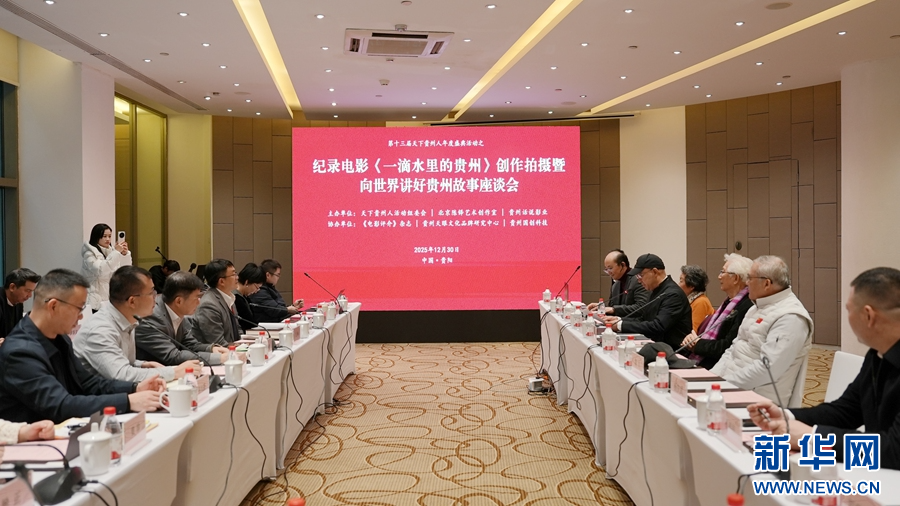 新华网贵阳12月31日电(周远钢)30日,纪录电影《一滴水里的贵州》创作拍摄暨向世界讲好贵州故事座谈会在贵阳举行。创作团队携项目筹备进展、核心创意与传播规划亮相,与贵州电影、传媒、文旅相关领域专家、学者及行业同仁共同探讨如何以影像为桥,向世界讲好贵州高质量发展故事。