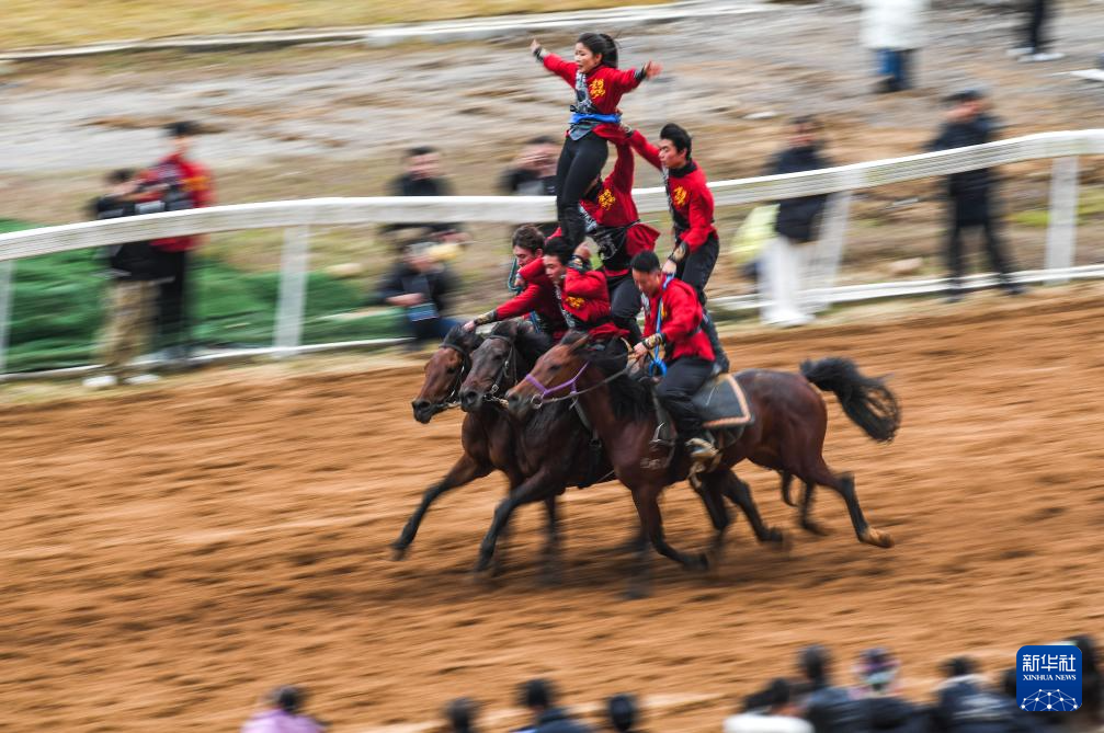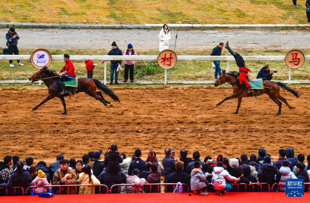 1月1日,骑手在贵州省三都水族自治县举行的“村马”马术表演中。新华社记者 杨文斌 摄