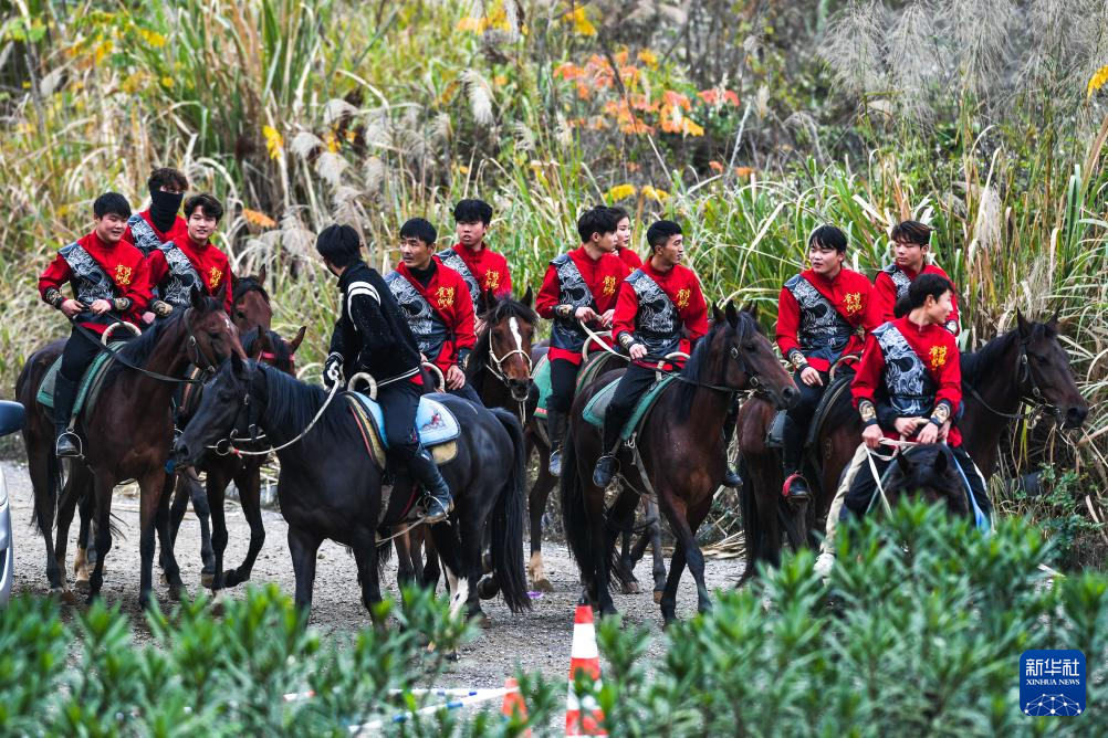 1月1日,骑手在贵州省三都水族自治县举行的“村马”“万马奔腾”表演中候场。新华社记者 杨文斌 摄