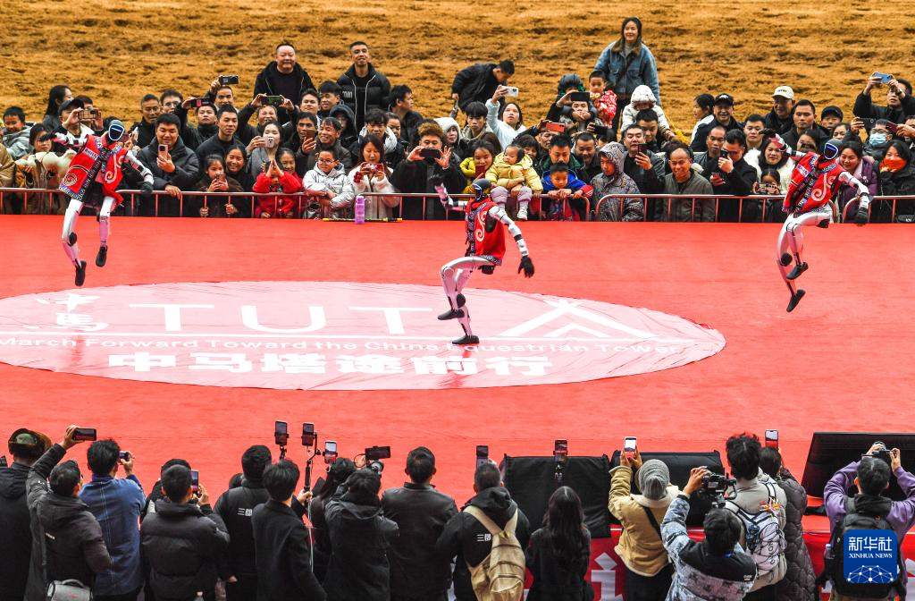 1月1日,机器人在贵州省三都水族自治县举行的“村马”比赛间隙表演节目。新华社记者 杨文斌 摄