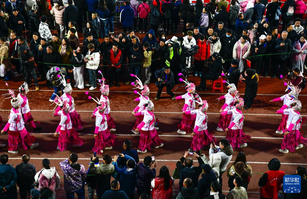 1月2日,侗族群众在第四届贵州“村超”开幕式现场。新华社记者 杨文斌 摄