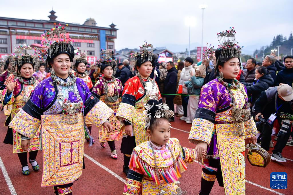 1月2日,苗族群众参加“村超”大巡游活动。新华社记者 杨文斌 摄