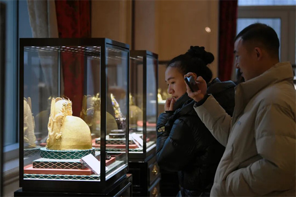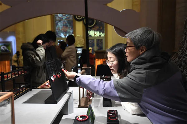 1月2日,市民游客在贵阳花果园国际文化艺术交流中心参观砺金坊非遗真手工珠宝。