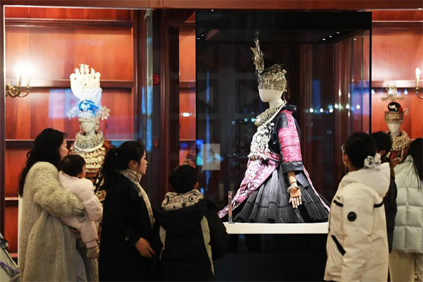 1月2日,市民游客在贵阳花果园国际文化艺术交流中心欧东花民族服饰博物馆(珍品馆)参观。