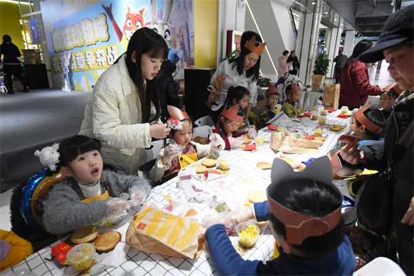 在亨特城市广场内,小朋友们在开展找不同游戏