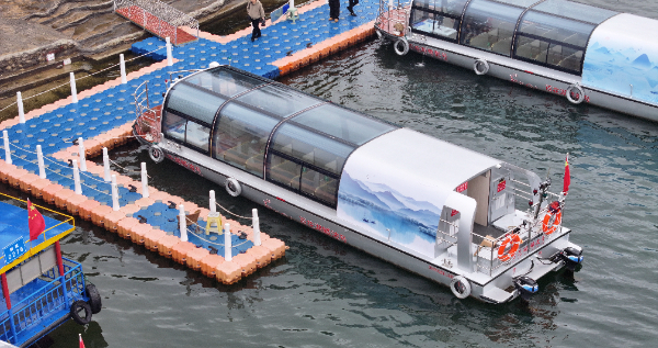 2025年12月31日,3艘“生态物语”系列新能源船舶亮相百花湖风景名胜区,并于2026年1月1日正式下水起航,标志着百花湖景区生态低碳游船时代正式到来。