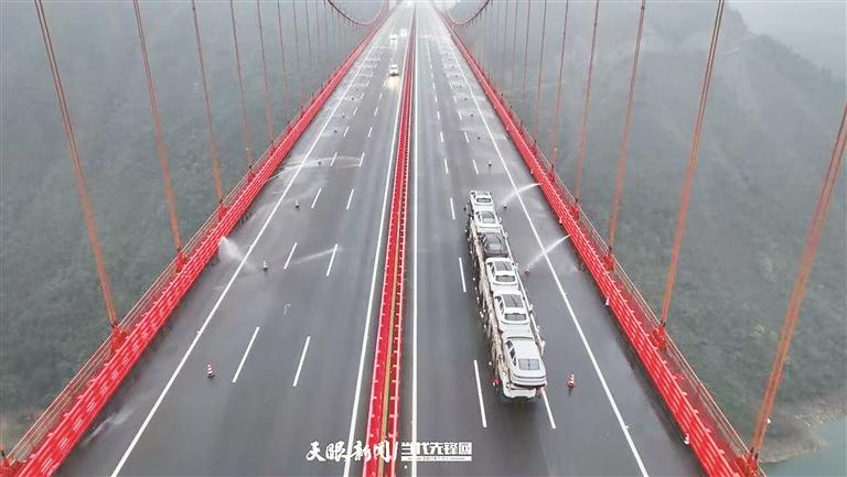 我省首套CG-8000型智能融雪剂喷洒系统近日在S36玉盘高速阳宝山大桥成功投入实战。该系统由贵州省交通运输综合行政执法八支队二大队督导建成。