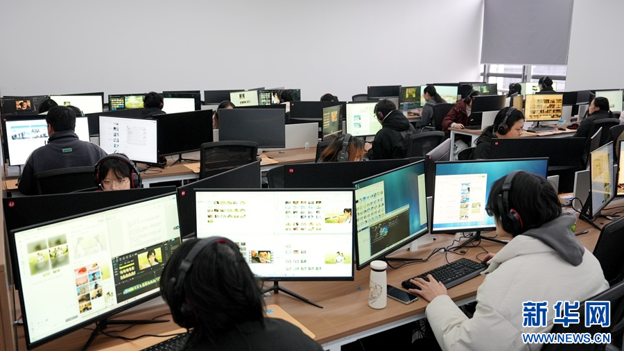 云岩数据标注产业基地内,数据标注员在工作中。新华网 周远钢 摄