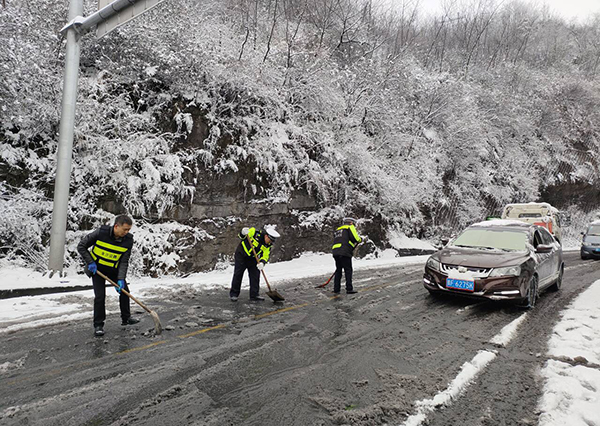 金沙公路管理段干部职工与交警部门联合开展抗凝保畅工作。(陈开锋 摄)