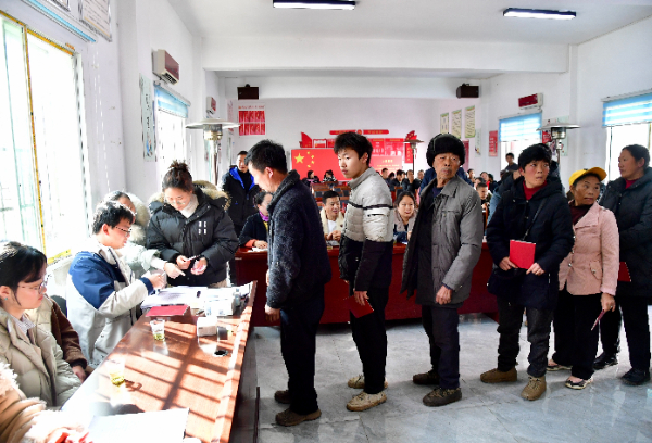 村民排队领取分红。