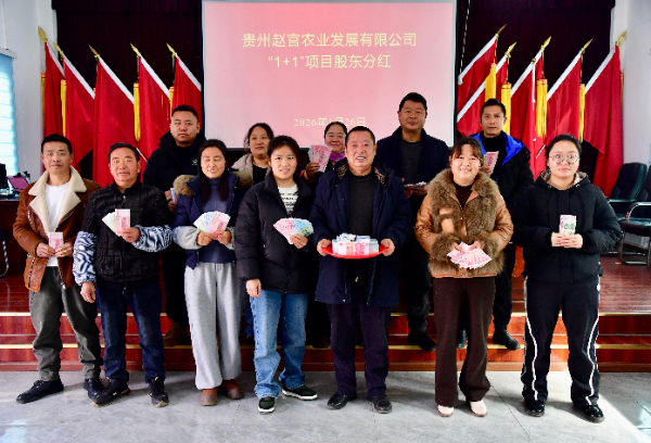 据介绍,此次分红分配方案兼顾股东权益与村民普惠、村集体发展与脱贫户帮扶:12.36%的红利分配给贵州赵官农业发展有限公司14名股东,剩余87.64%分配给赵官村股份经济合作社。合作社将所获分红提取30%作为公积公益金,用于壮大村集体经济;剩余部分按85%用于村民普惠性分红、15%用于建档立卡脱贫户分红。层层细化的分配方式,让每一笔红利都用在实处、落到细处。