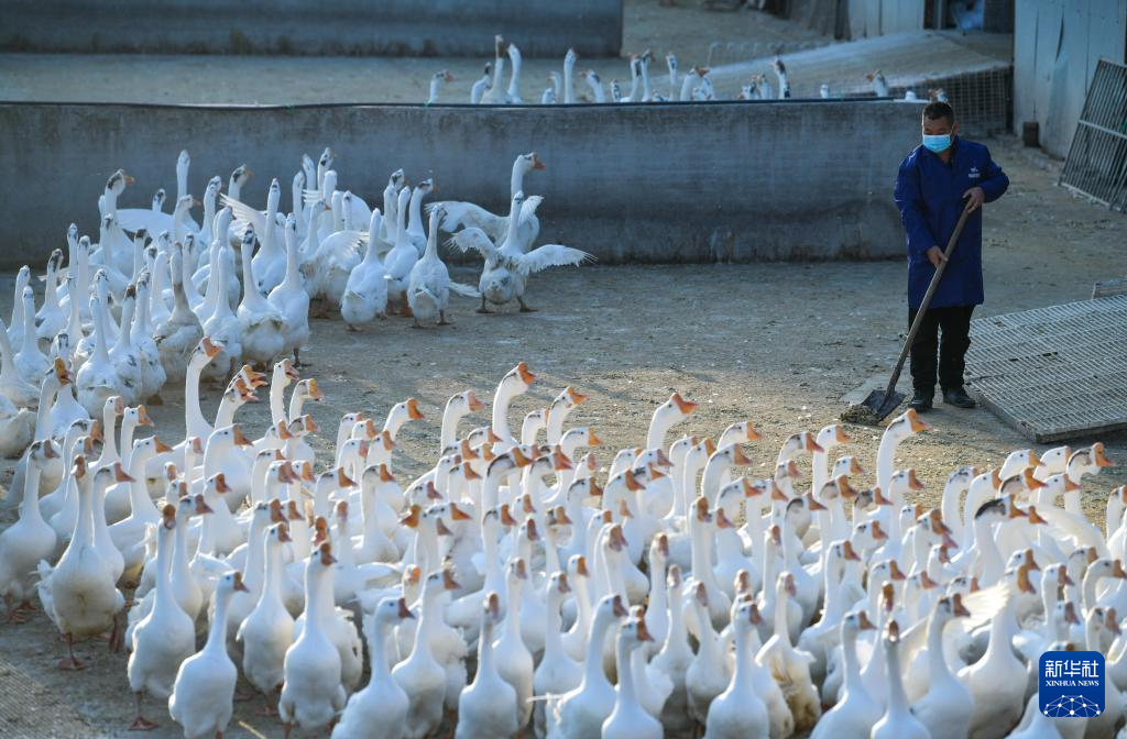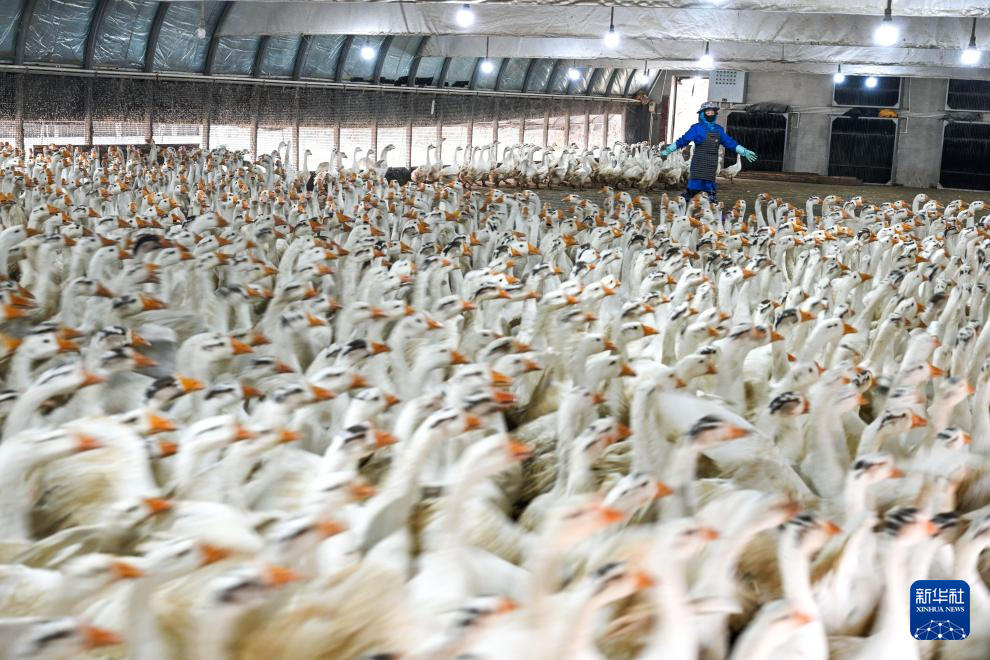 工人在贵州省锦屏县新化乡欧阳村的生态鹅育雏基地管理种鹅(2026年1月21日摄)。新华社记者 杨文斌 摄