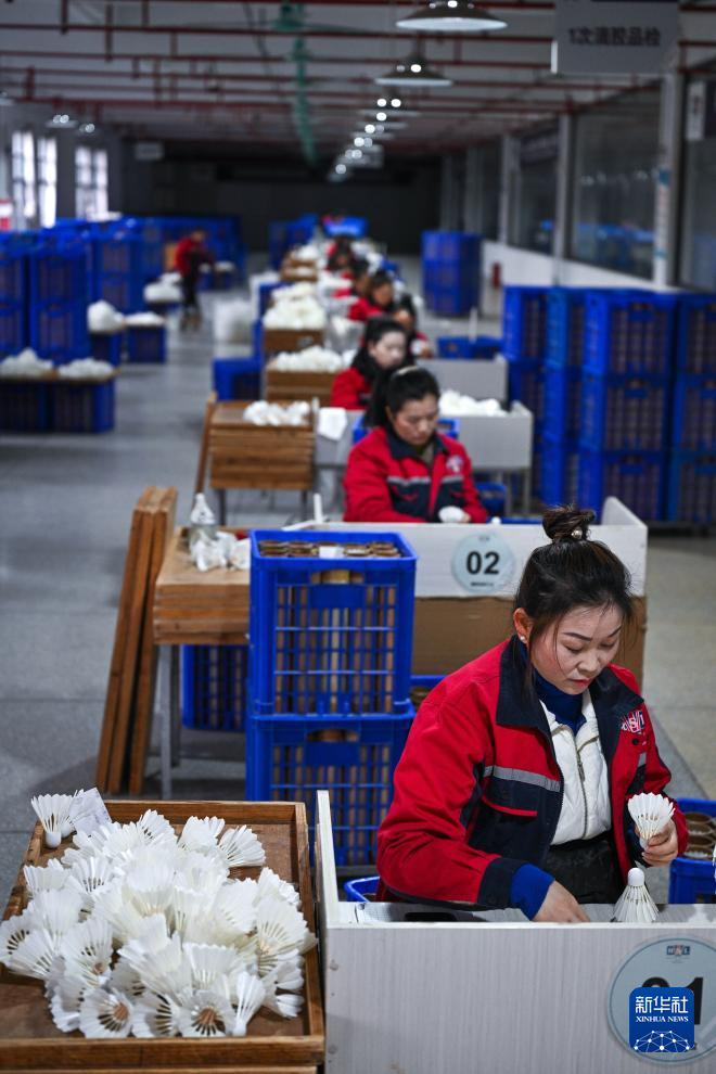近年来,全县创新“上游鹅孵化与养殖、中游加工和运动装备制造、下游体育旅游”的融合发展模式,目前已成功吸引10余家羽毛球运动装备制造企业集聚,形成了从羽毛球加工到球拍、球筒、球包、球袜等的完整制造集群。