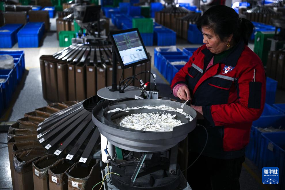在贵州锦屏经济开发区羽毛球生产基地,工人操作机器进行毛片弯拱分选(2026年1月22日摄)。新华社记者 杨文斌 摄