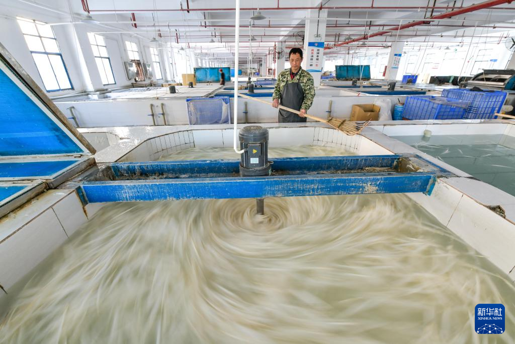 工人在贵州锦屏经济开发区羽毛球生产基地清洗鹅毛(2022年12月19日摄)。新华社记者 杨文斌 摄