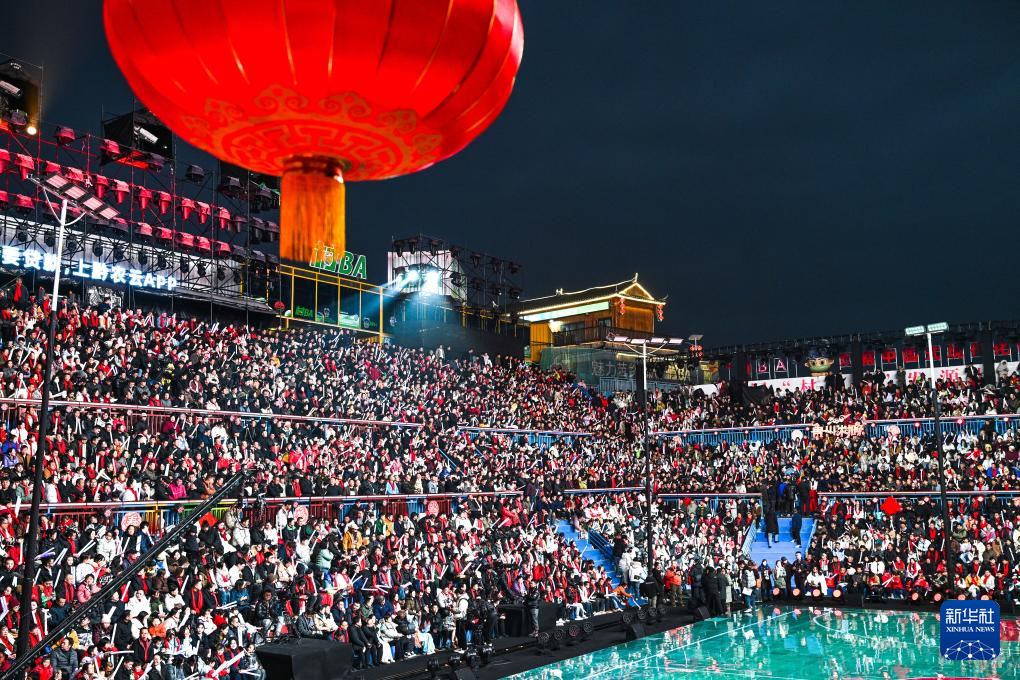 2月3日晚,2026贵州“村晚”主会场活动在黔东南苗族侗族自治州台江县“村BA”球场录制拍摄。“村晚”现场给观众带来“村BA”“村超”“村T”“村歌”等贵州“村字号”节目,演出以村民为主,展示贵州多姿多彩的民族文化和地方“村字号”IP特色。