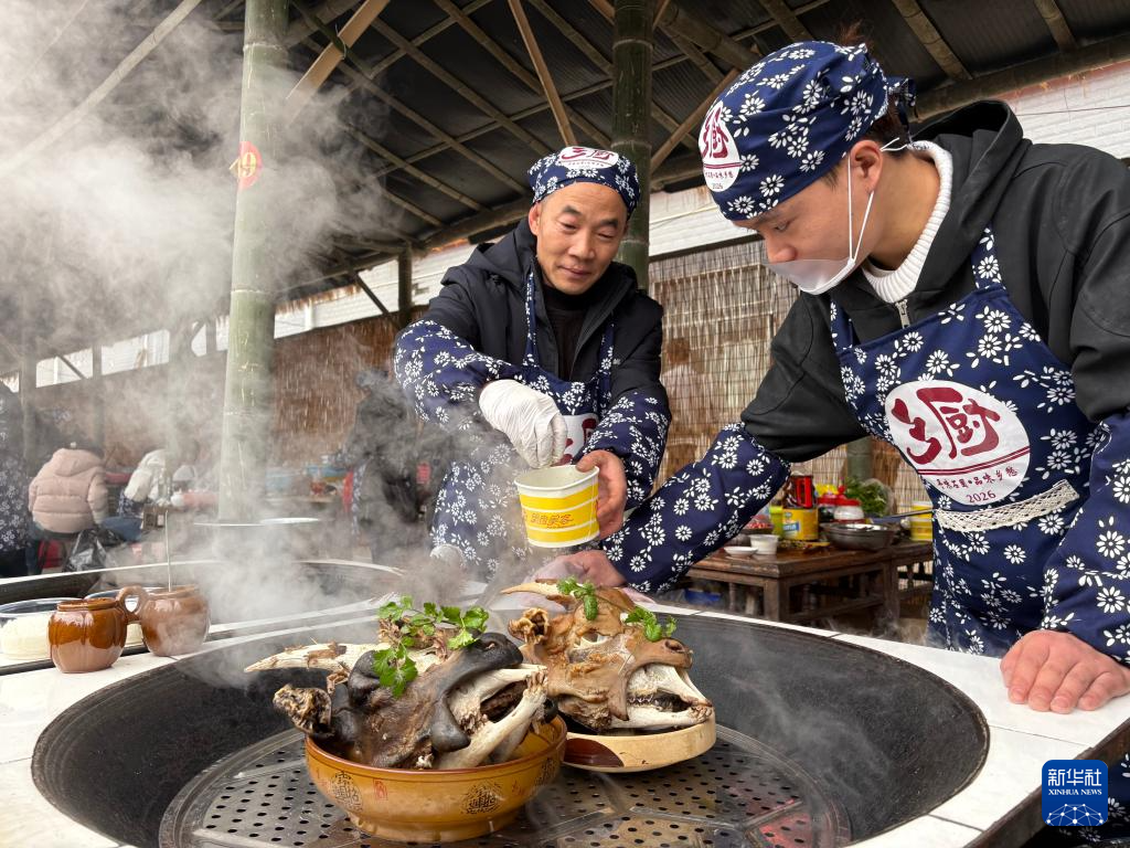 新华社贵阳2月5日电(记者李凡)各色美食琳琅满目、土菜高手齐聚一堂、煎炒烹炸“炫技”比拼……近日,记者走进贵州铜仁市石阡县举办的一场“乡厨”大赛现场。