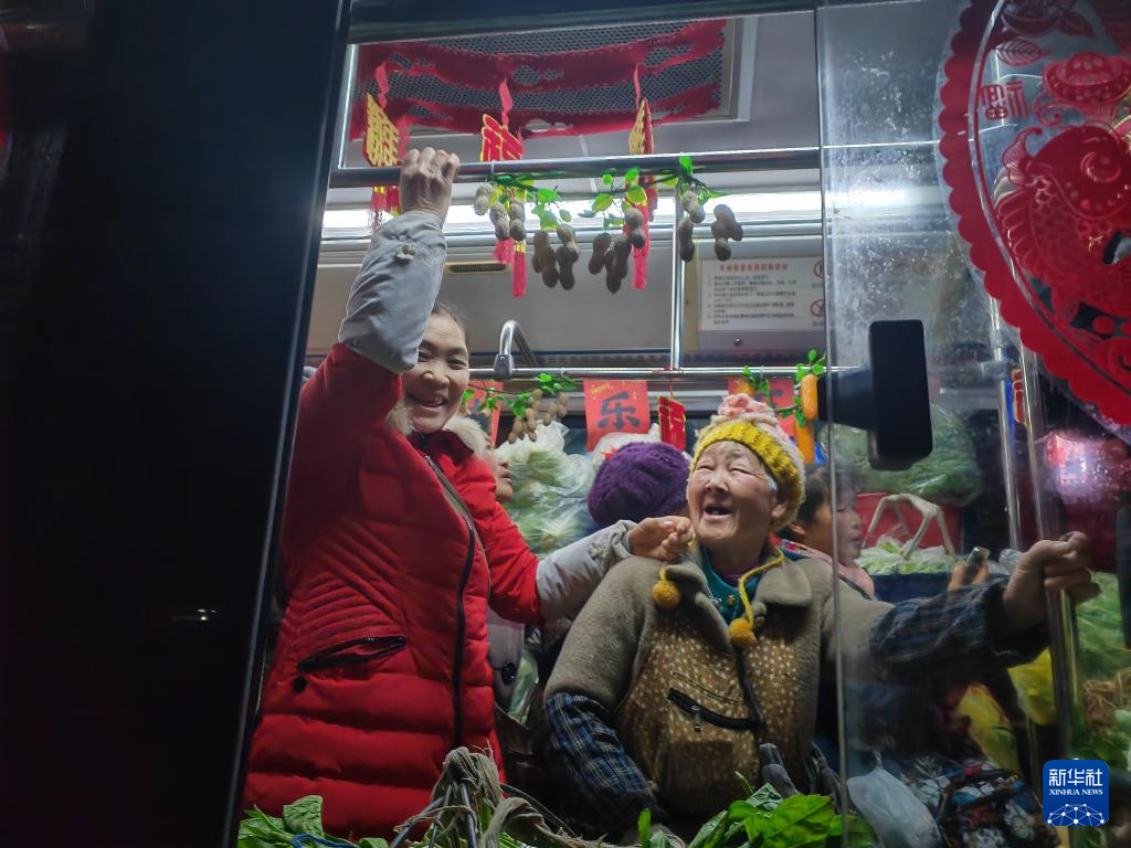 新华社贵阳2月14日电 题:开往新春的“卖菜公交”