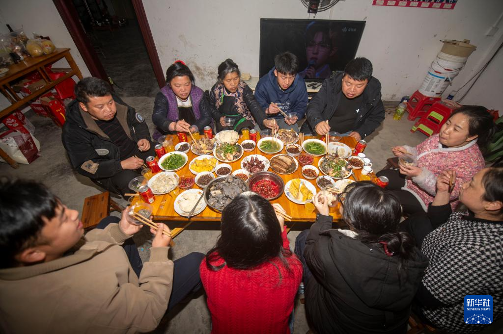 2月16日,贵州省黔东南苗族侗族自治州从江县丙妹镇大塘村一户居民吃年夜饭。