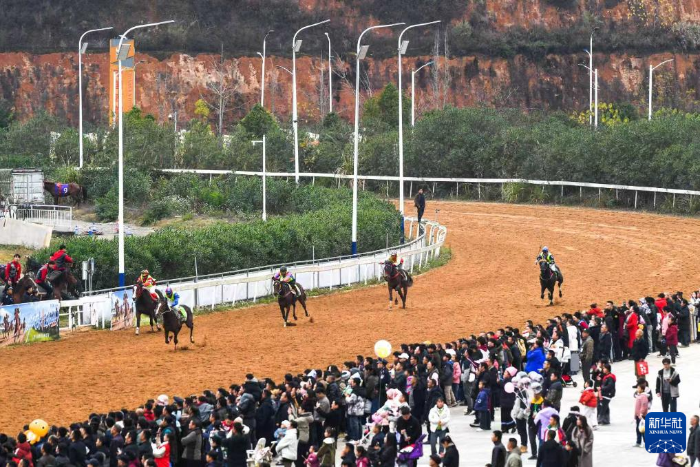 选手在2026年“贵州村马”全国赛马邀请赛中比拼。新华社记者 杨文斌 摄。