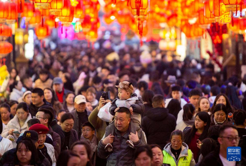 2月17日,游客在贵州省安顺市西秀区安顺古城历史文化街区游玩。